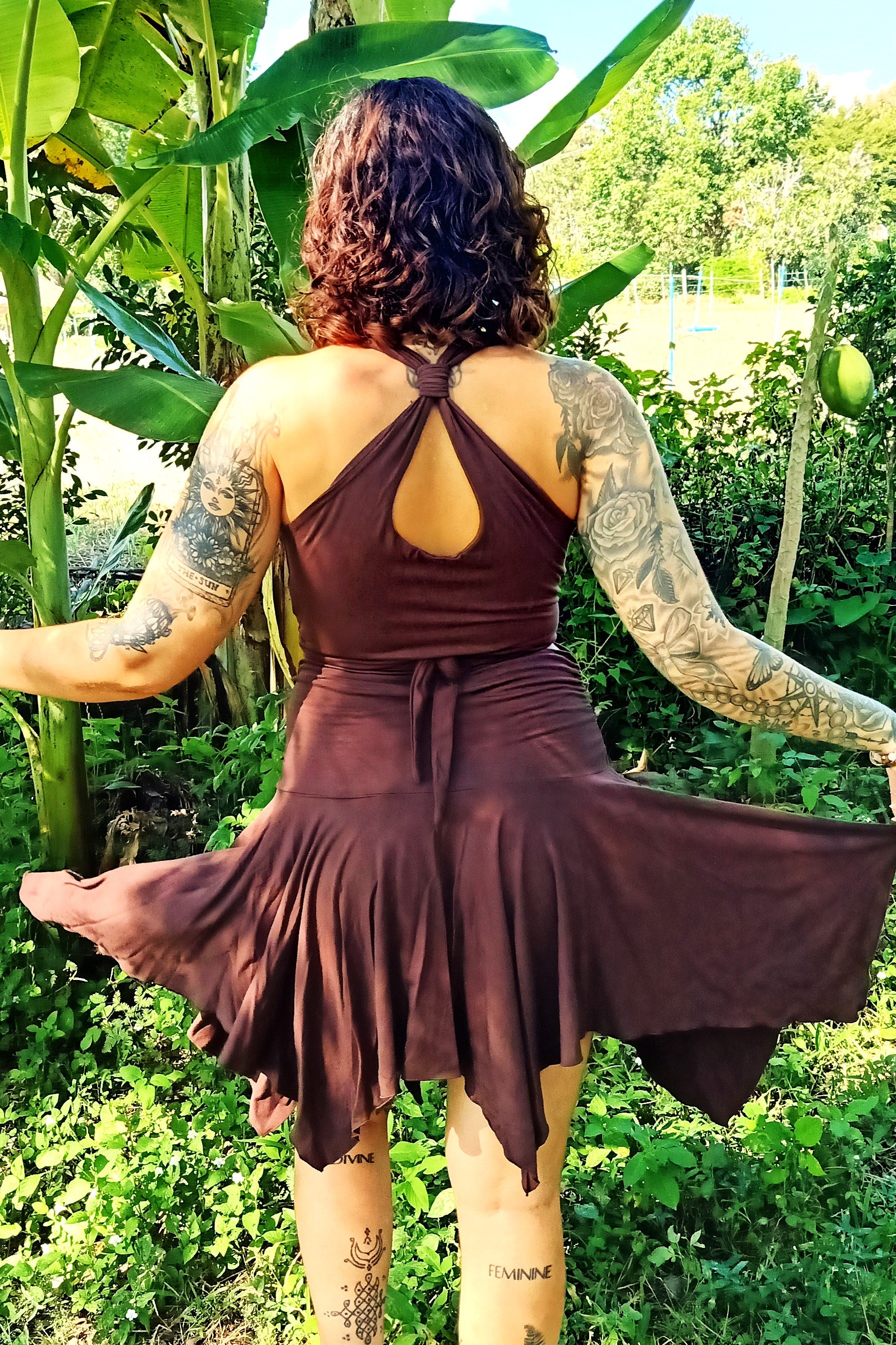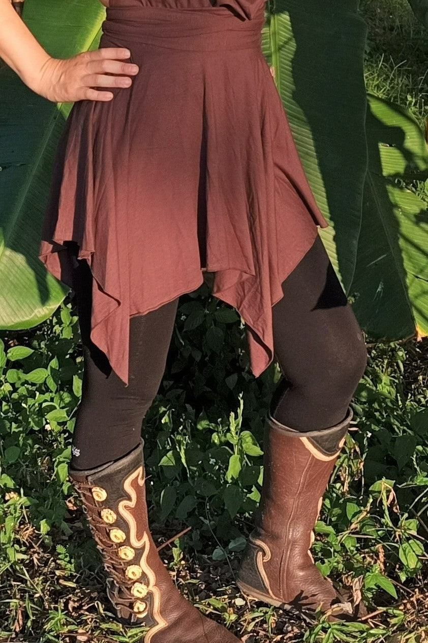 Adjustable waist band, it can be worn higher, lower, or folded over, to customize the fit for a wide range of earth goddess sizes and shapes. Great in the summer months, or in the fall layered with leggings, you'll love this elven fae skirt all year round.