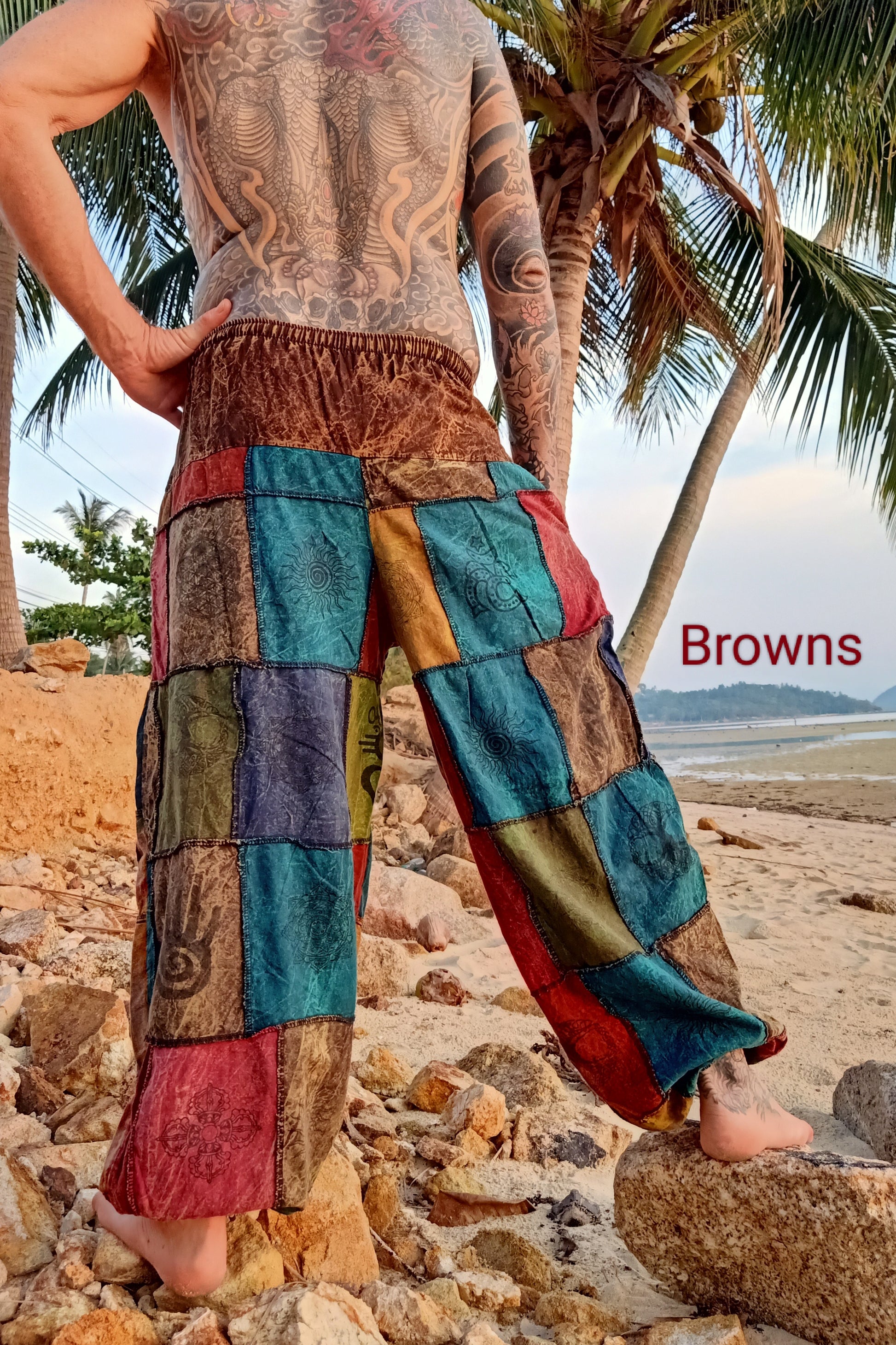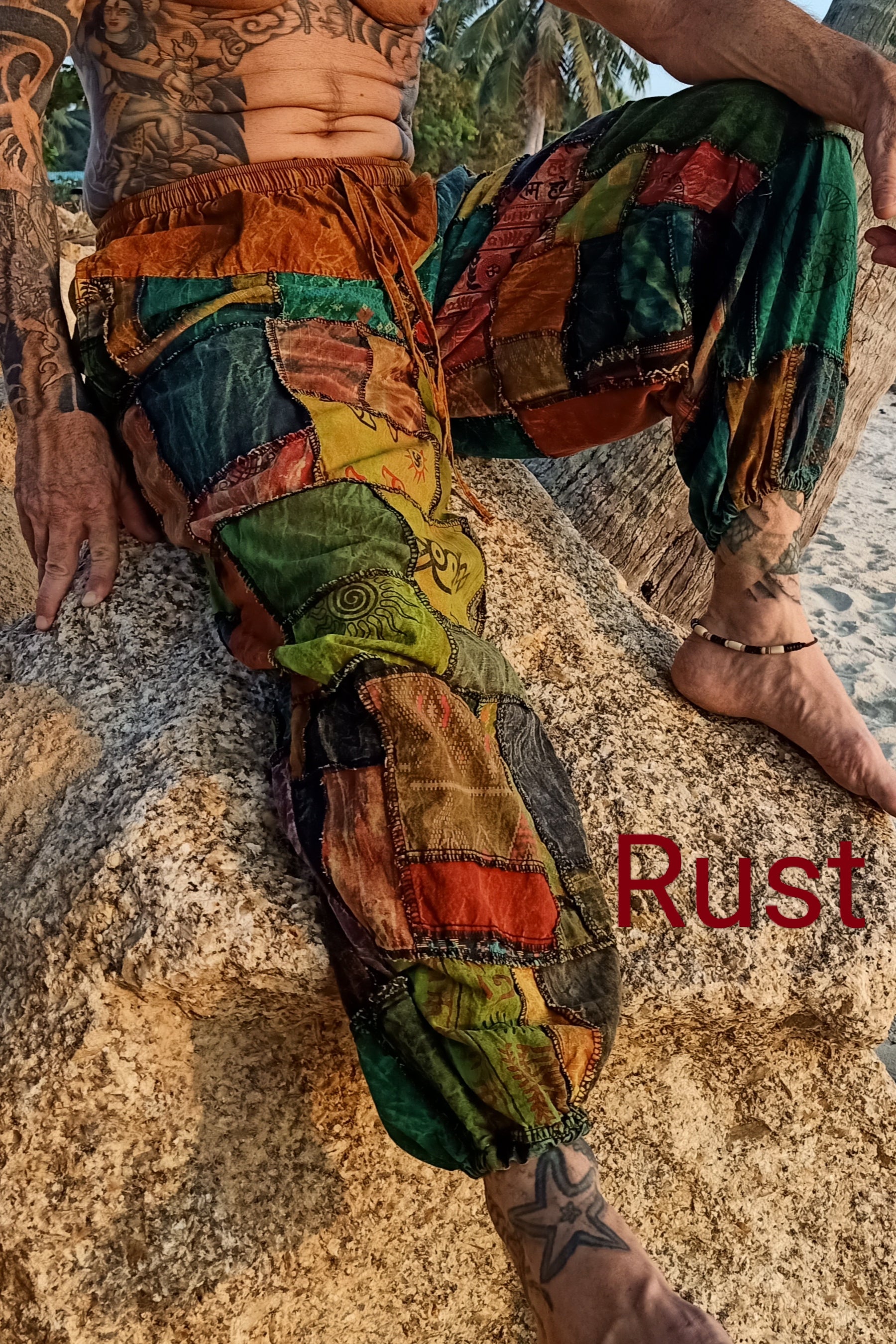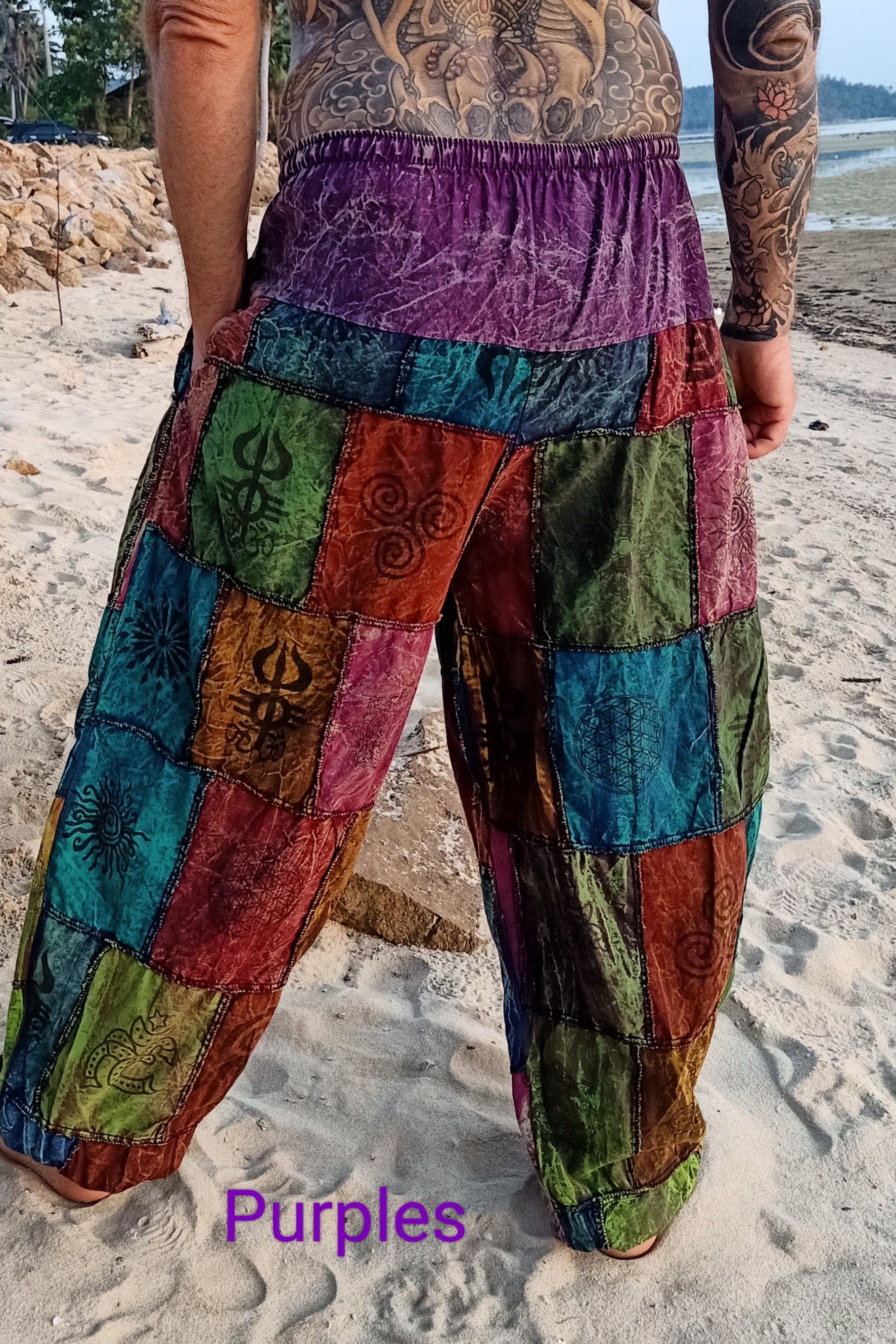 Available in Brown, Green, Blue, Rust and Purple. With elastic/drawstring waist and elastic ankles with two side pockets these gender neutral pants look amazing on everyone. Slight drop crotch makes them perfect for yoga, movement, festivals, everyday life and everything in between. Hippie style for those who want to live naturally and be comfortable.