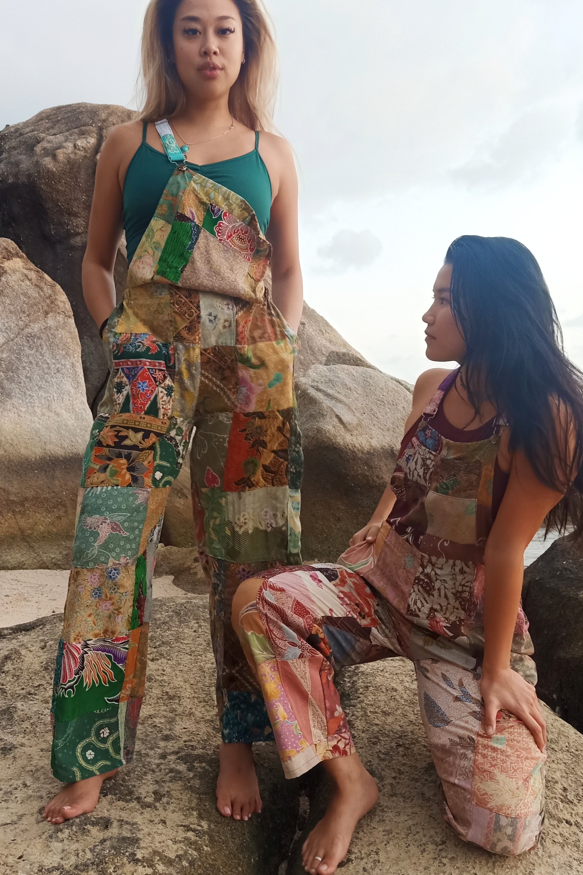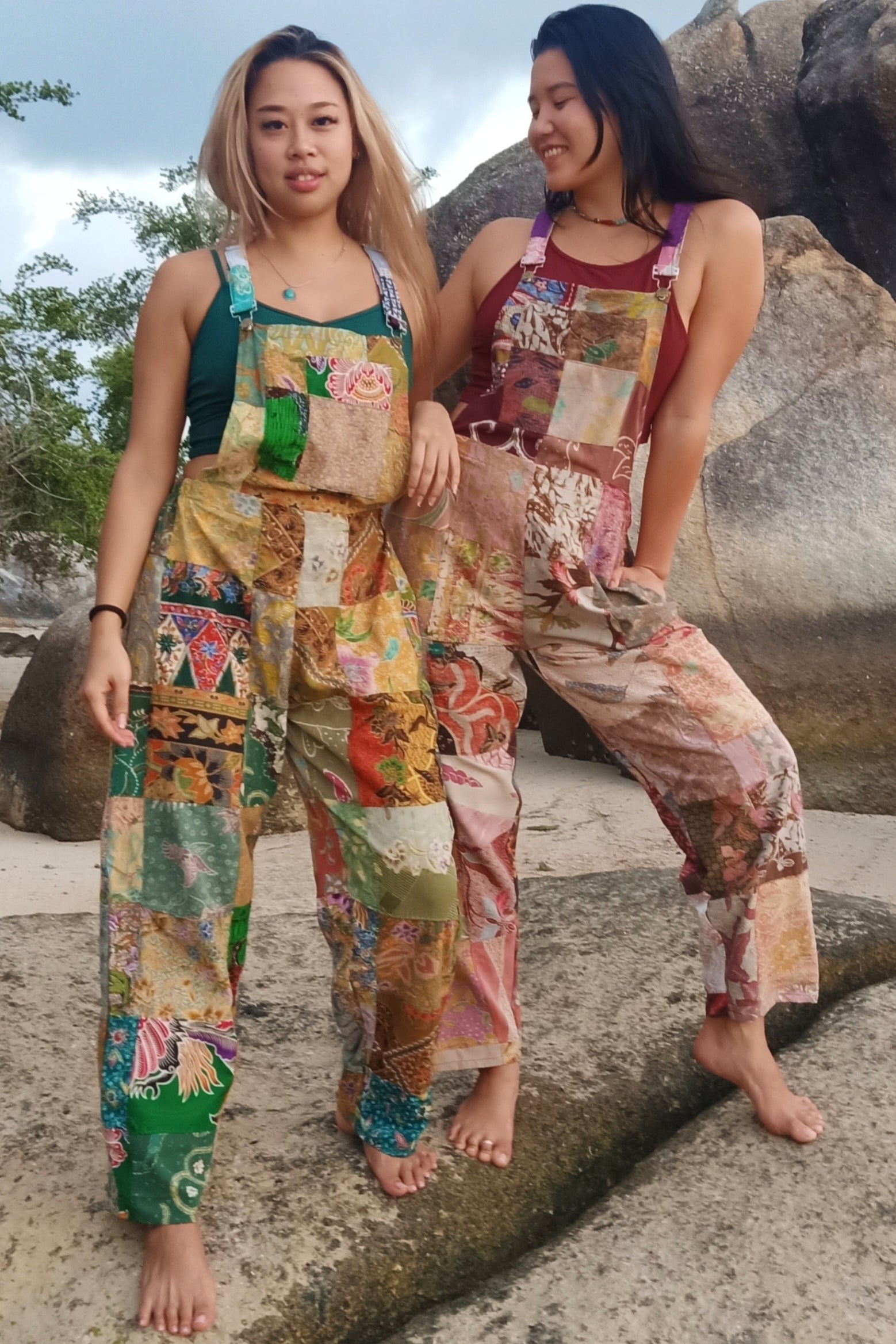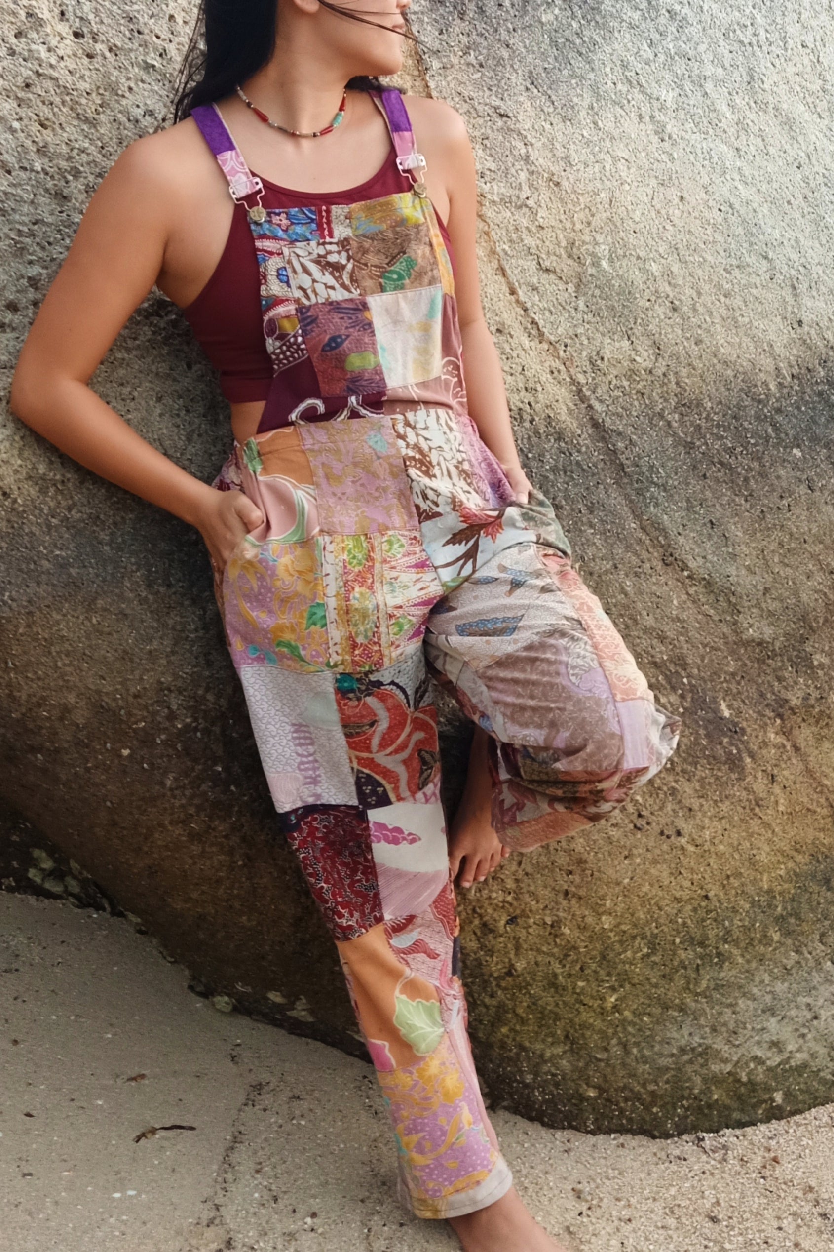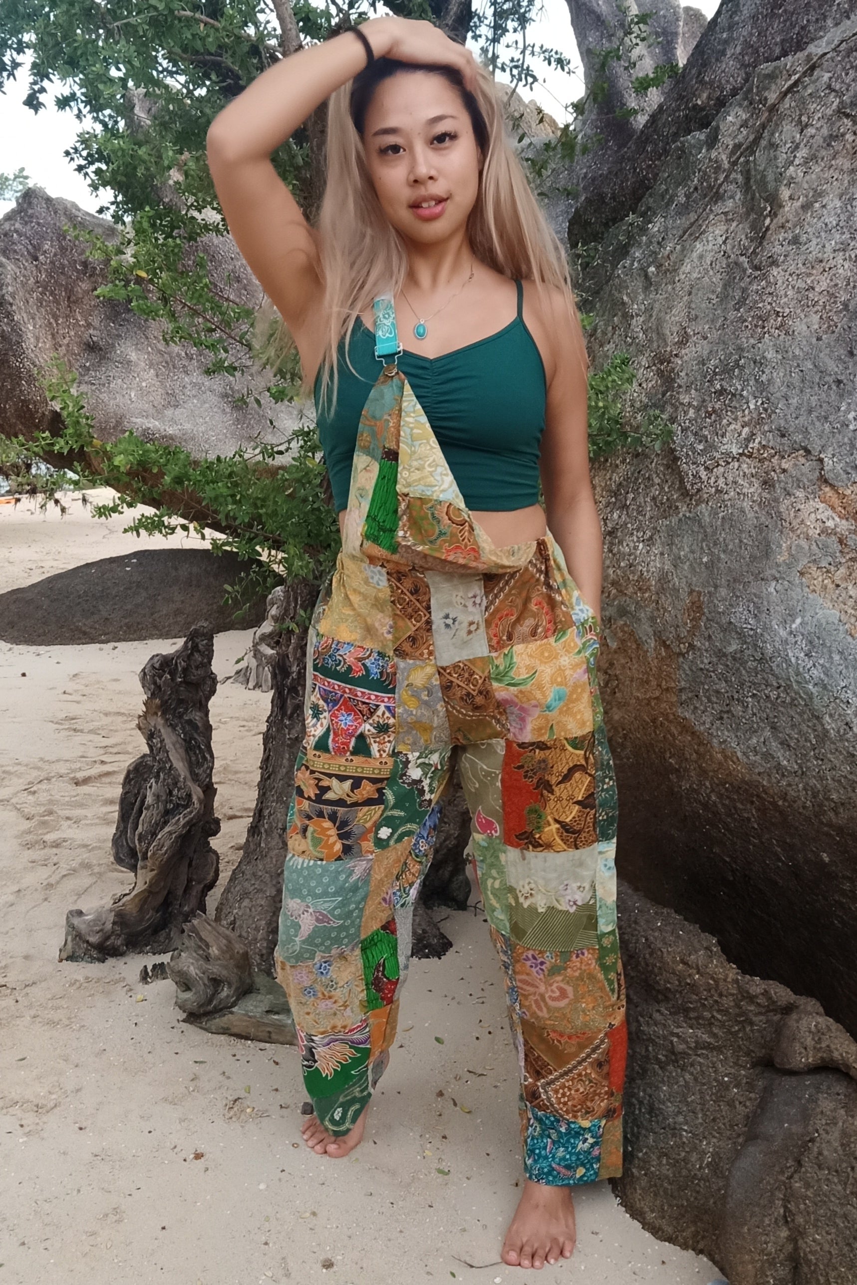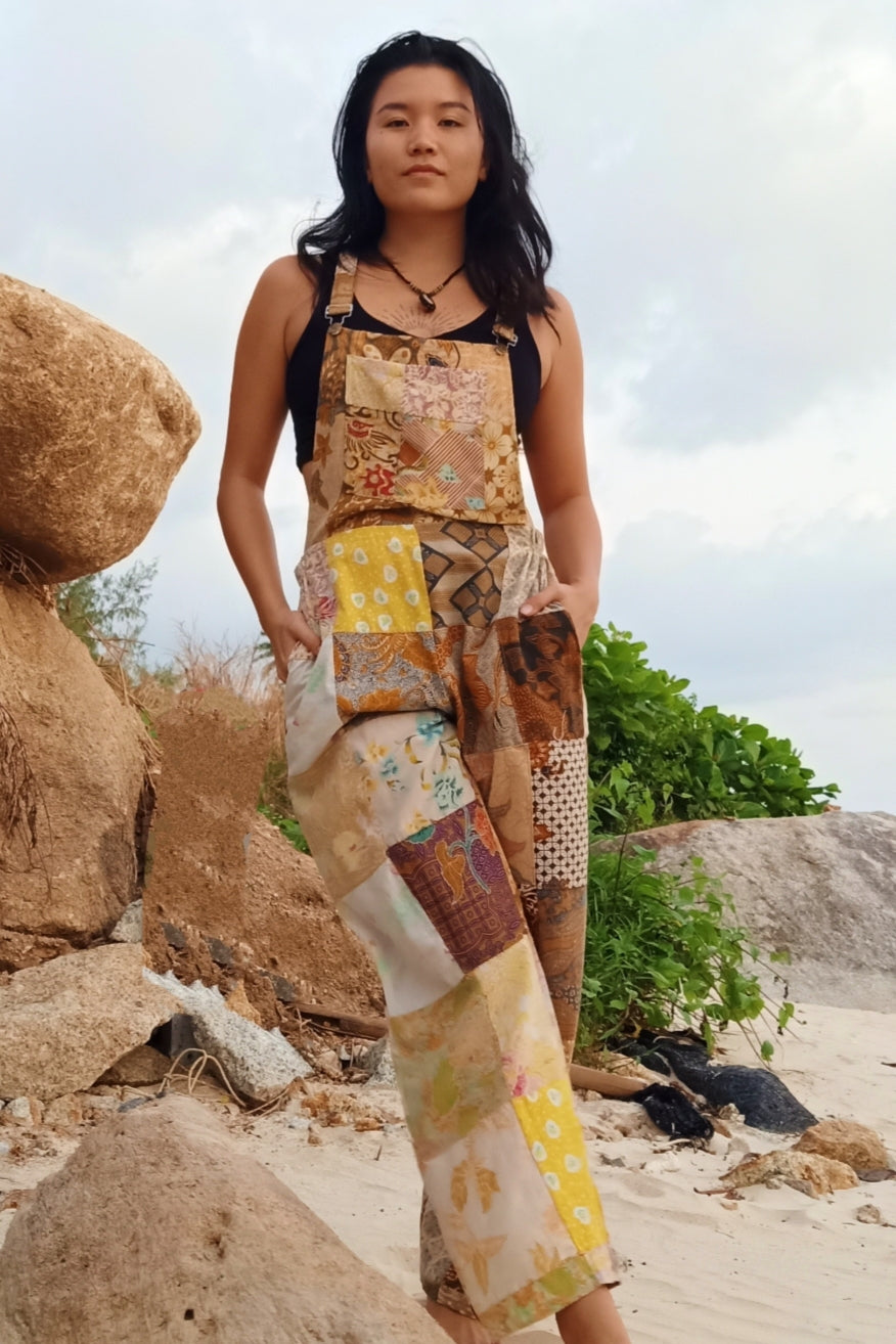 Long Patchwork Overalls handmade of upcycled 100% cotton patchwork fabric.