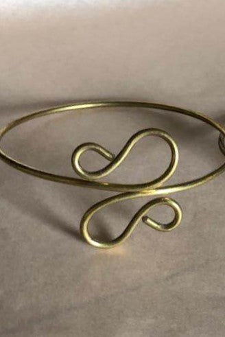 Adjustable size upper arm cuff in Indian gold tone brass metal