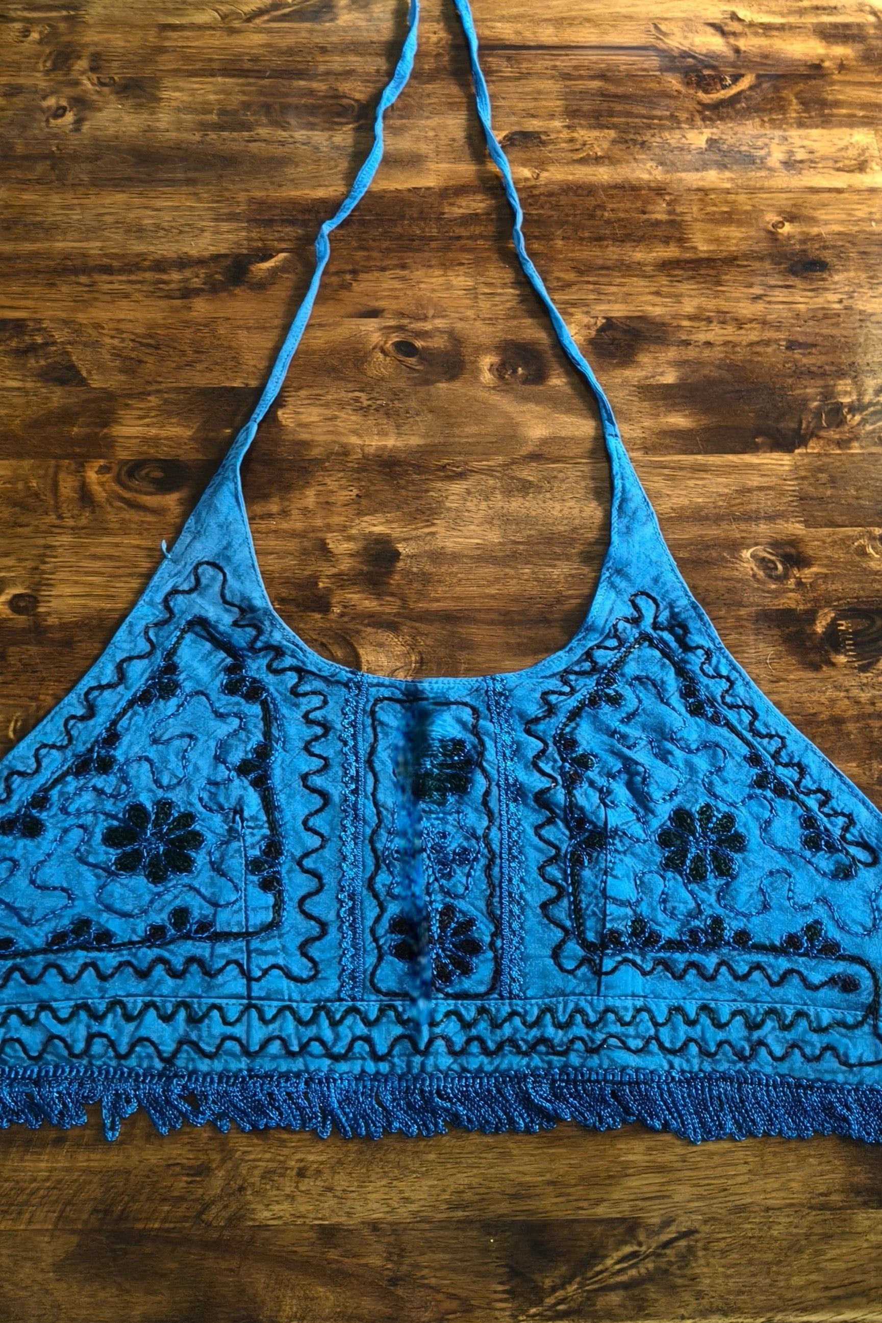 Beautifully embroidered Halter Tops come in One Size Fits Most.
