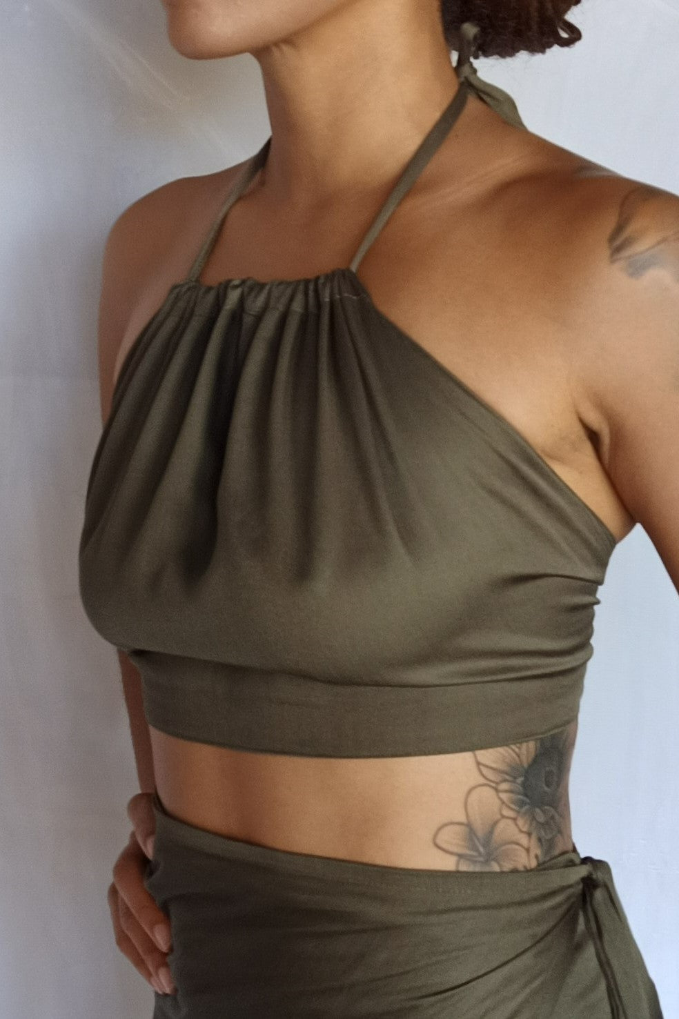 Our new Lyocell tree pulp eco fabric line includes this easy to wear tie back Halter Top. Available in Sage, Rust, Plum, Forest, Onyx and Snow. One size fits all, with matching skirts and pants. Check out all the Lyocell here.