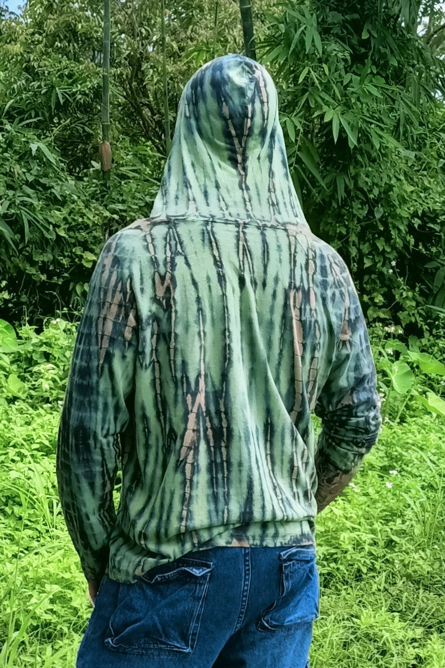 Gender neutral long sleeve hoody in Rainforest tie dye.