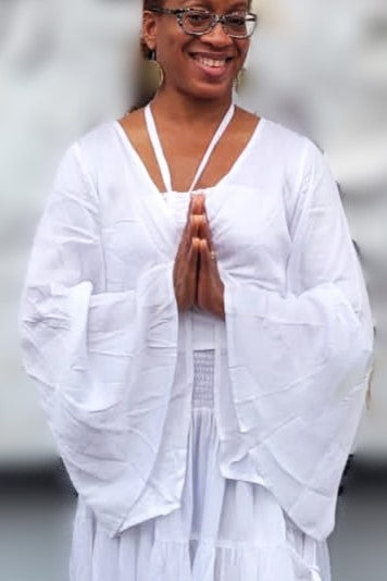 Our Lily Top is the ultimate Boho Style Wrap Top with extra large bell sleeves. it is a feminine flowy top that can be tied in front or wrapped around and tied in back for more coverage.