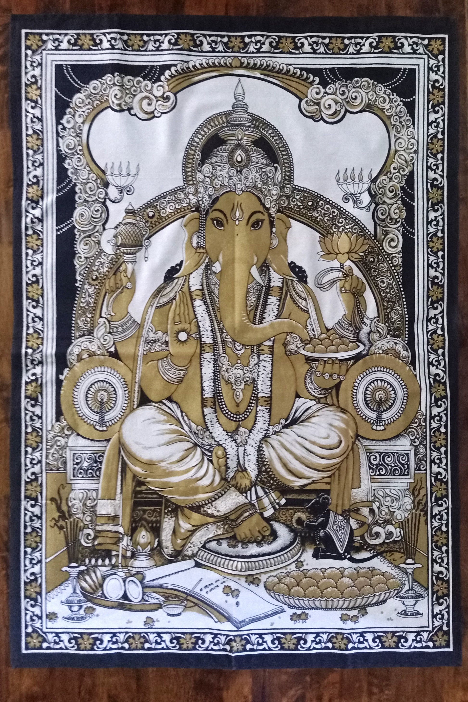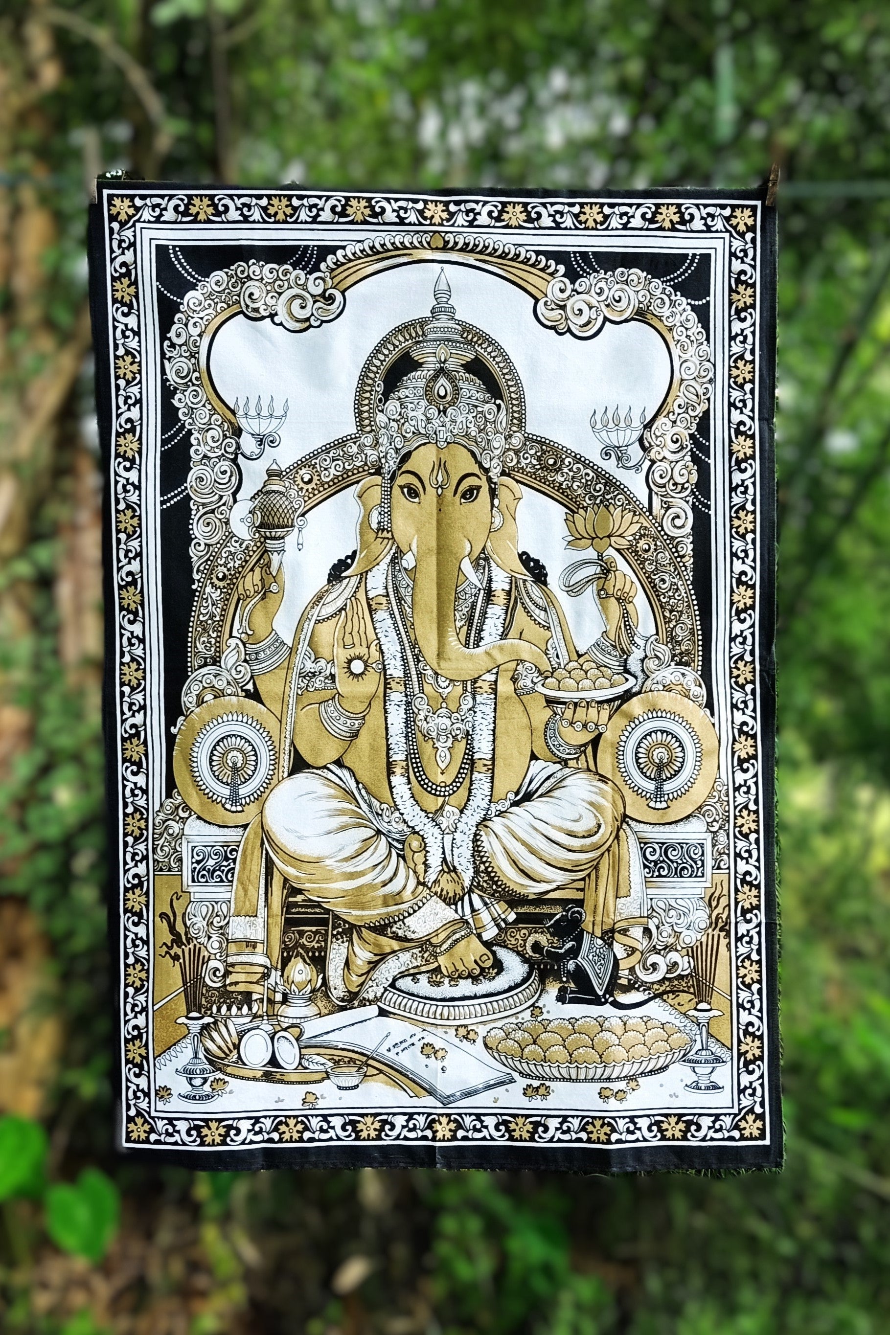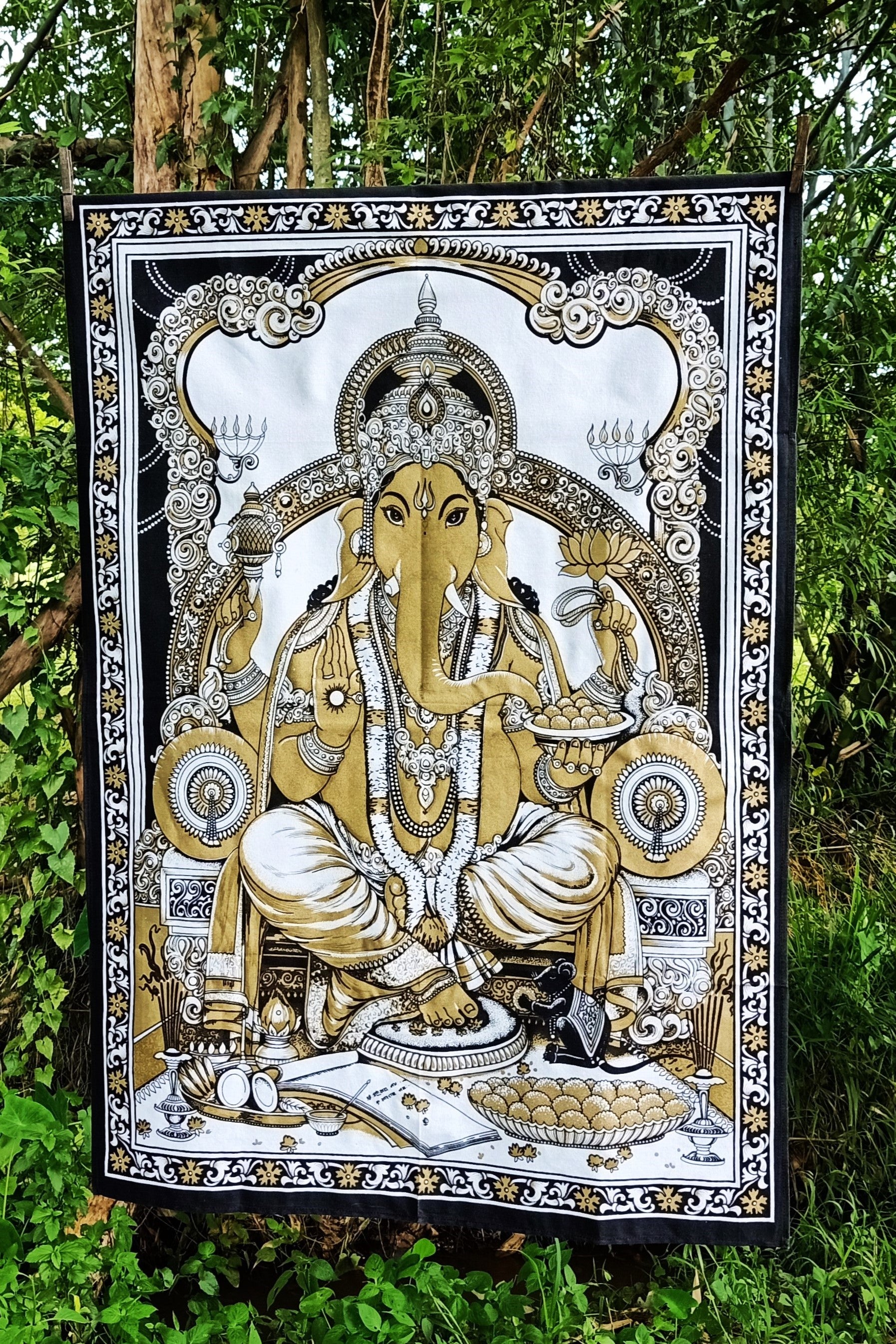 Gorgeous spiritual wall art tapestry available in Ganesh, Shiva or Buddha. 100% cotton with black and hand block printed gold details. Perfect for yoga studios, dorm rooms and meditation spaces.