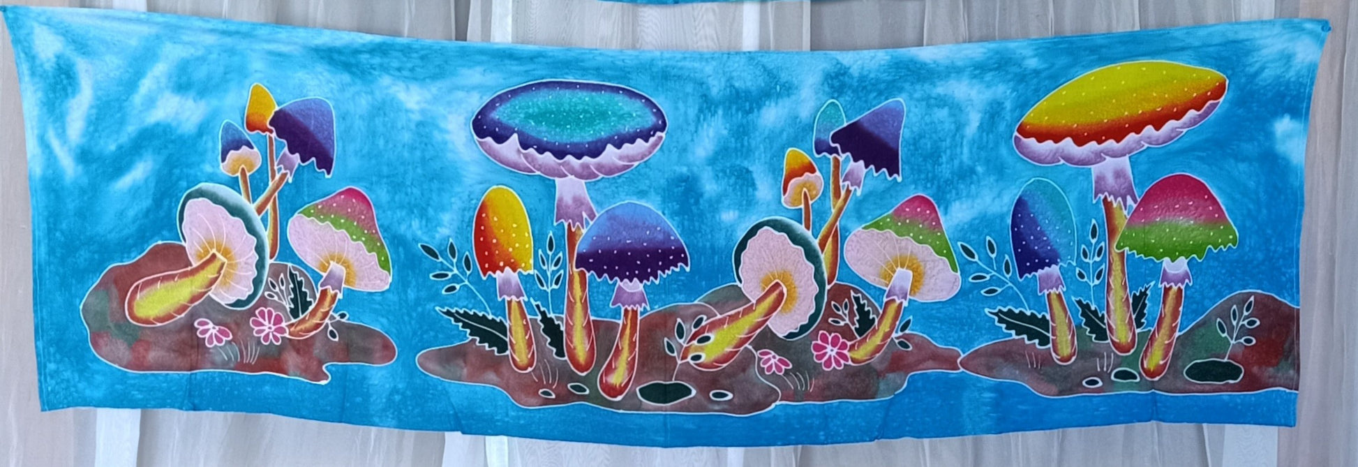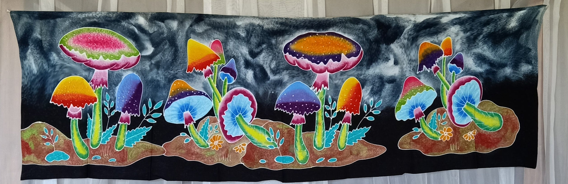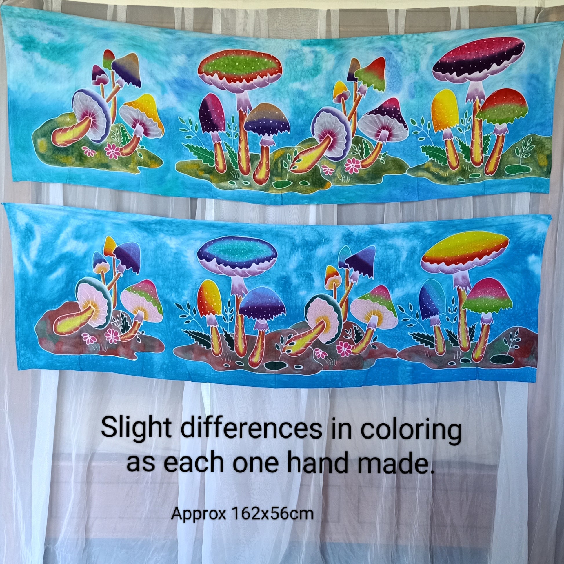 Gorgeous full color 100% cotton handmade Mushroom Wall Art looks stunning with the light of a window, or on a solid wall.