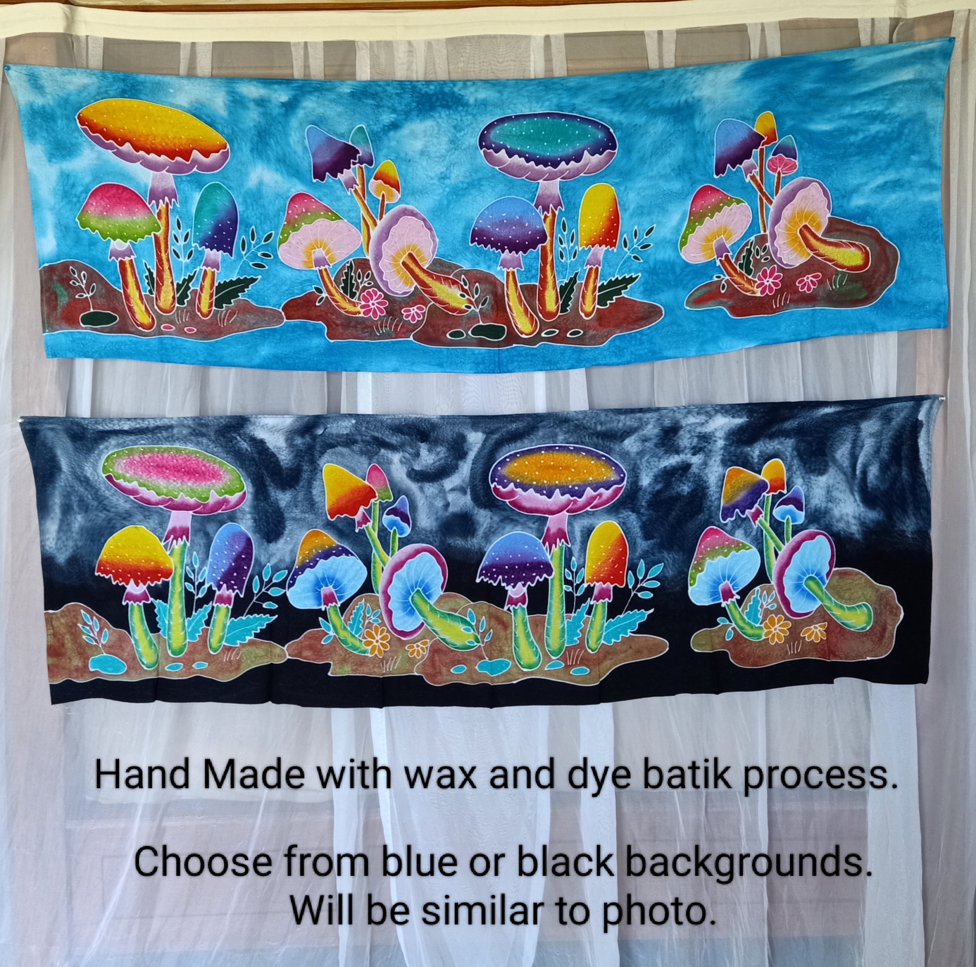 Available with blue or black background, will be similar to photos, but not exact as each one is hand made with wax and dye, not printed nor mass produced.