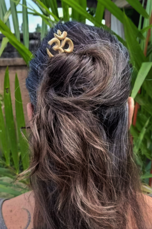 Handmade Wooden Om Symbol Hair Sticks intricately carved in 3D, fully reversible.