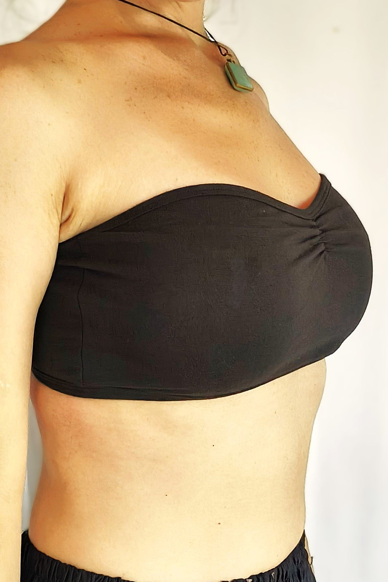 Lotus Flower embroidery in black on the back. Redesigned and now made with 95% organic cotton fabric and only 5% spandex, great as a tube top or under overalls, sundresses, etc.