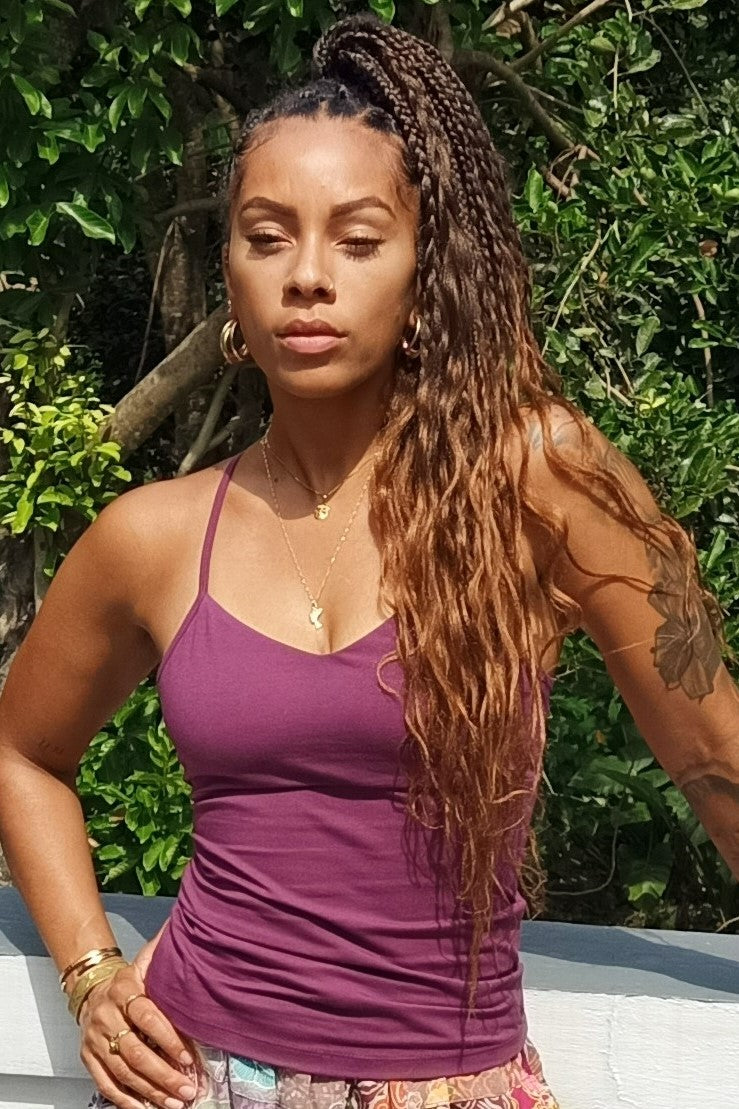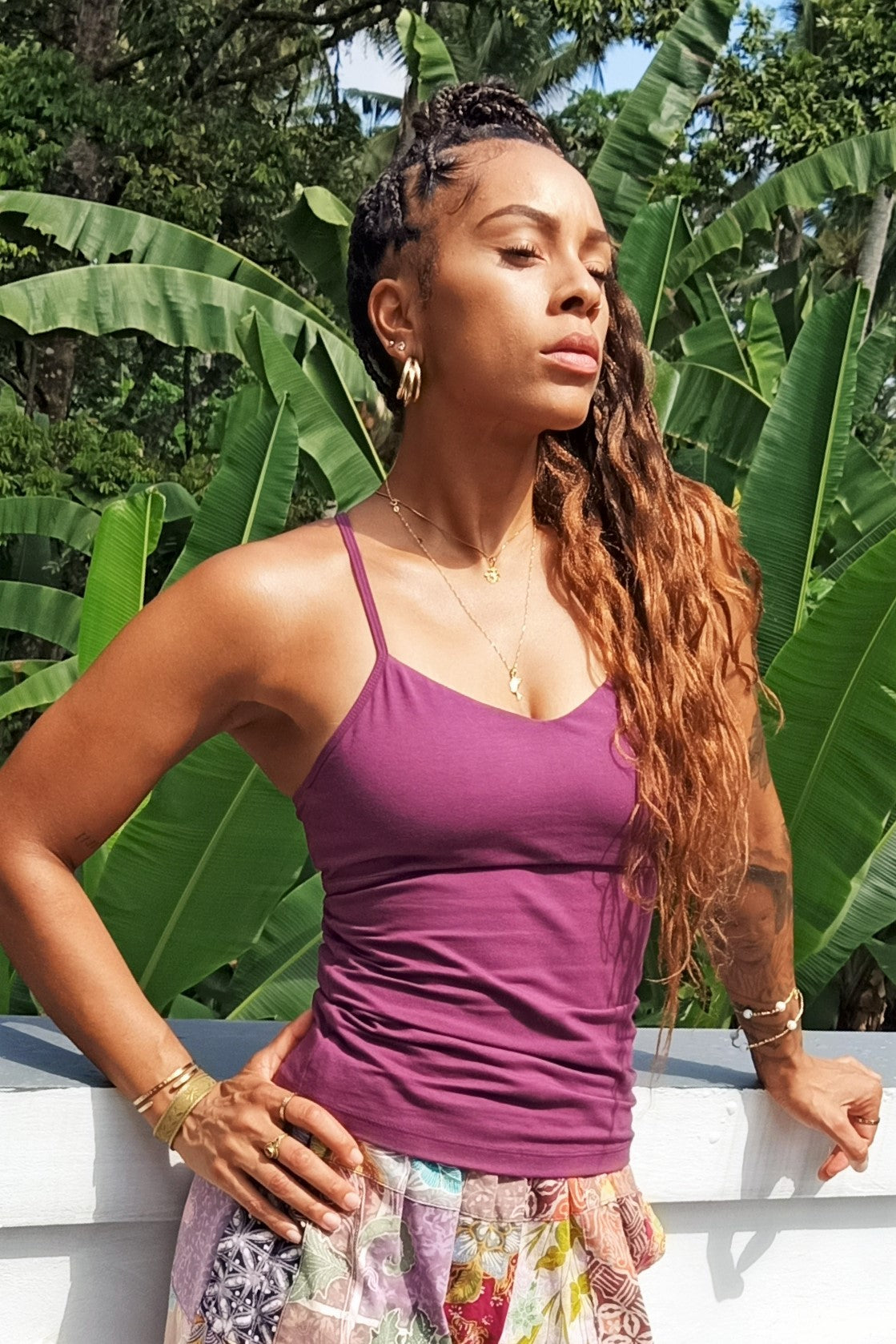 Solid black Cobalt Ananda Tank Top with built in bra and beautiful geometric back strap design. Fits all cup sizes, sizing based on underband measurement: